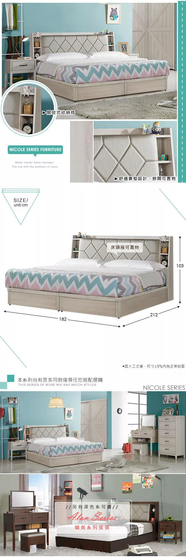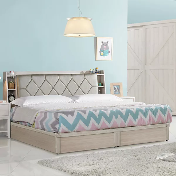 Homelike 蘭可6尺床台組,自然簡約的白雪松色,讓視覺看起來更為寬敞明亮,展現生活的高質感,床頭靠背枕的舒適設計,搭配兩側開放式儲存格,讓收納空間更方便應用,床頭箱附帶收納功能,掀開面板便可放置眾多物品,整體造型簡潔,結構穩固耐用,營造優雅、恬淡的家居氛圍。