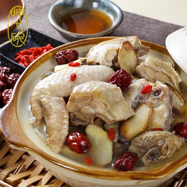 麻油雞湯(840g):麻油、老薑、米酒、雞腿肉
