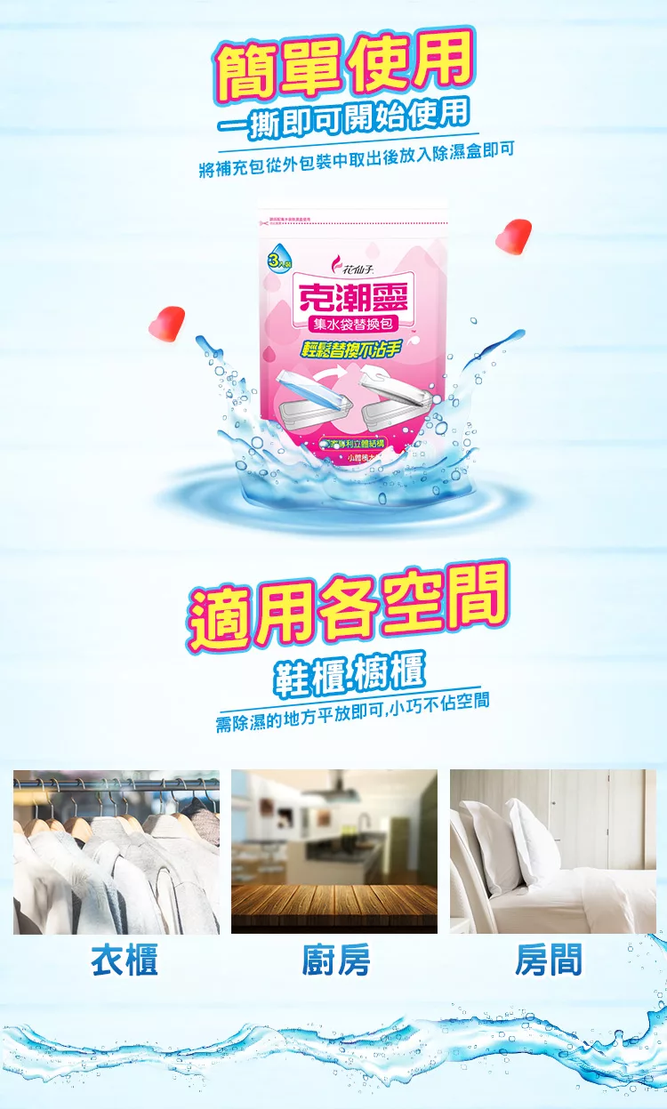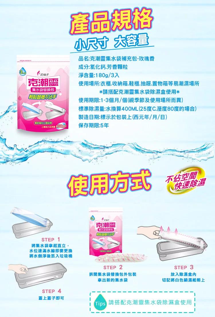 【克潮靈】集水袋補充包400ml-玫瑰香(3入-組,12組-箱)~箱購![]()